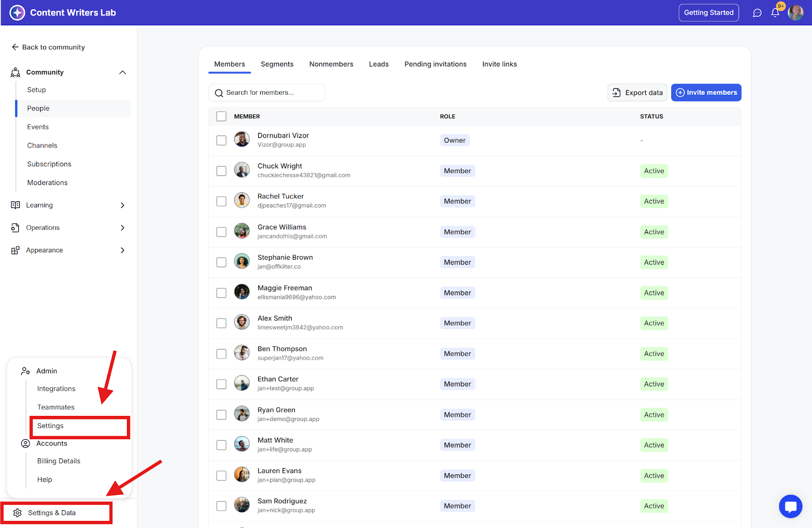 Step 2: Go to Settings & Data on the side menu and select Settings.